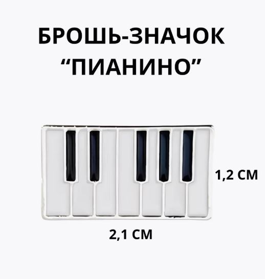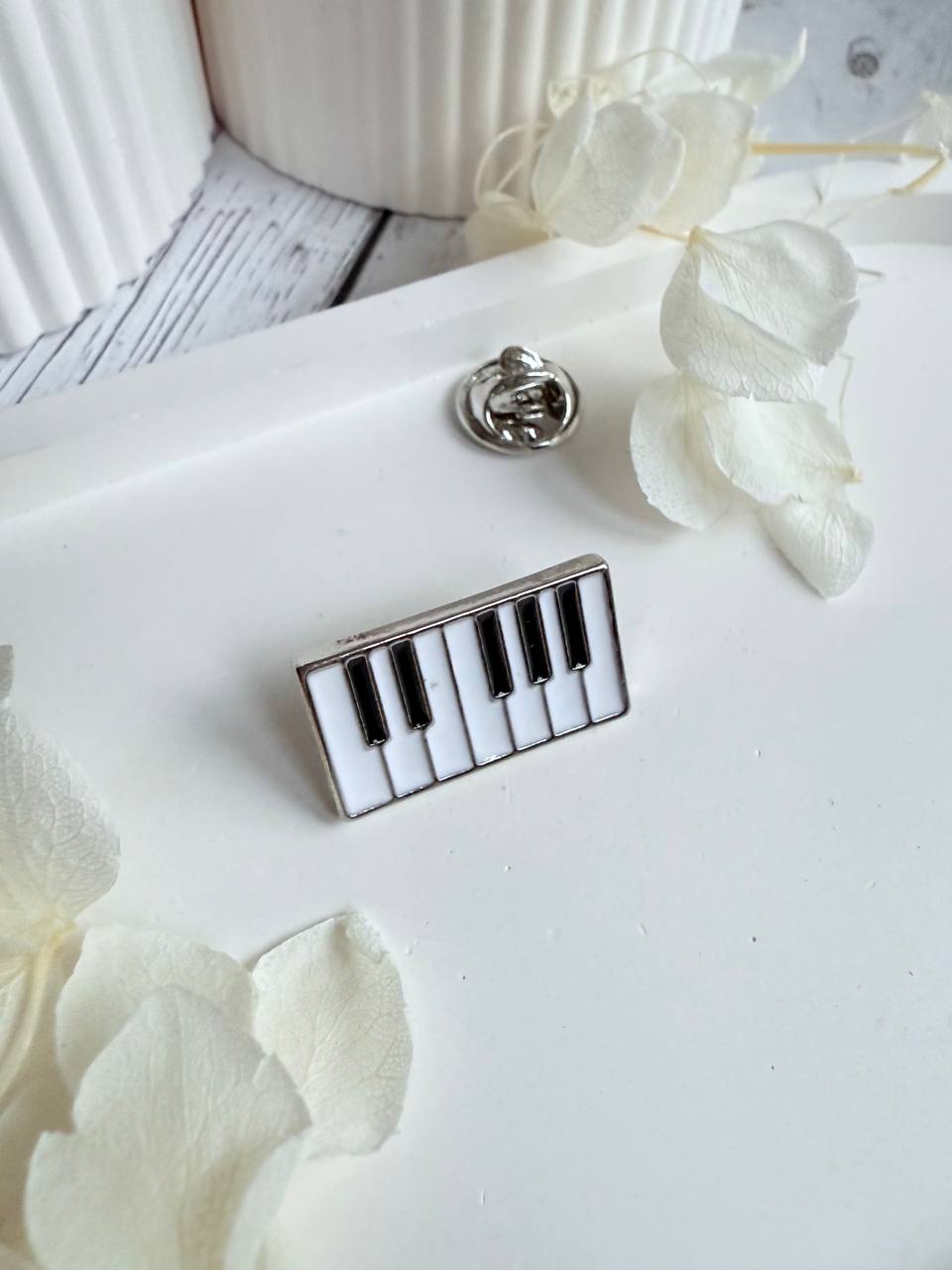 Брошь-значок в виде клавиш - отличный подарок музыканту! Подойдет для украшения футболки, лацкана пиджака, сумочки или рюкзака.