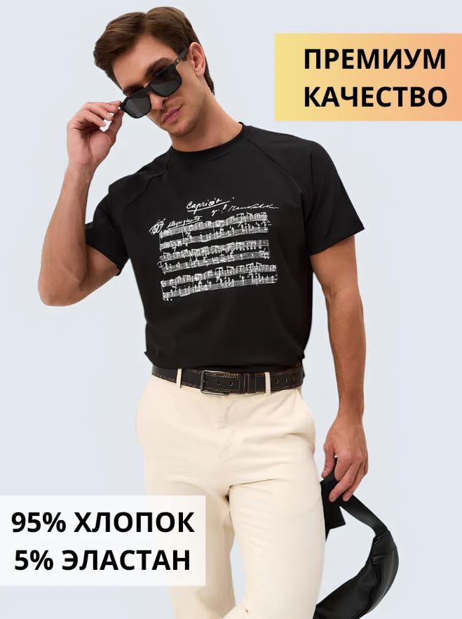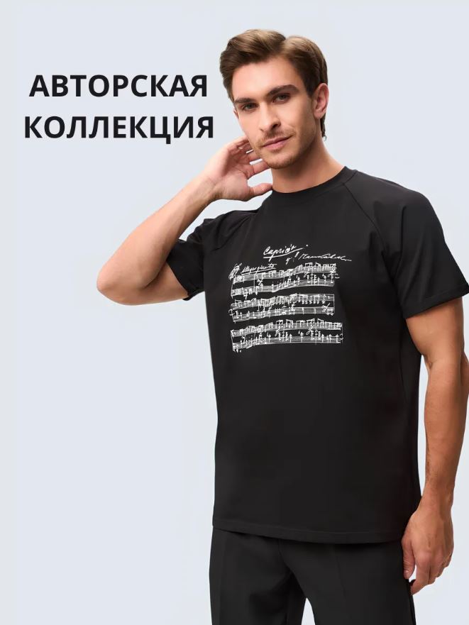 Дизайн футболки - ноты П. И. Чайковского, его рукопись произведения "Каприччо для фортепиано Op.8"