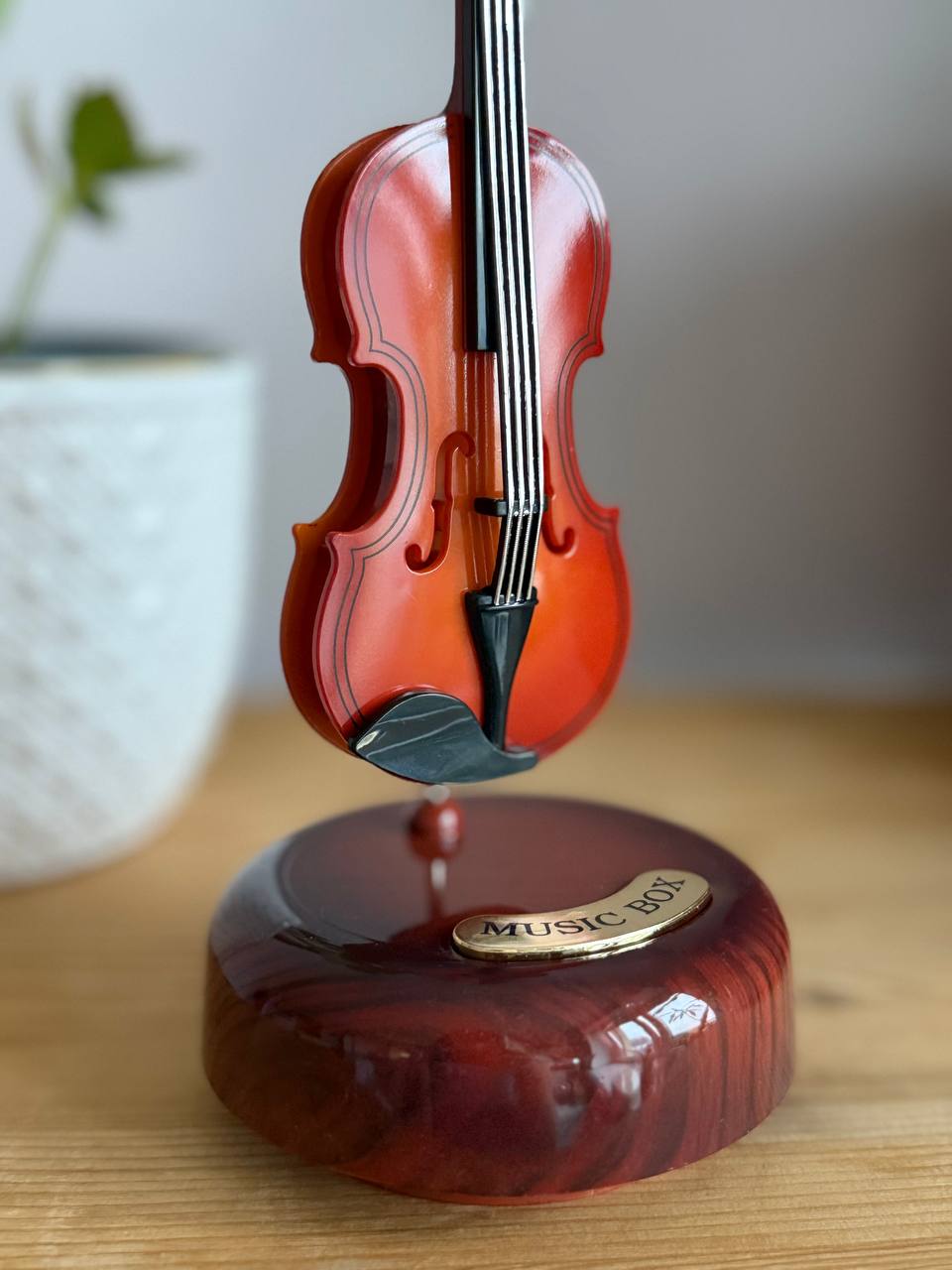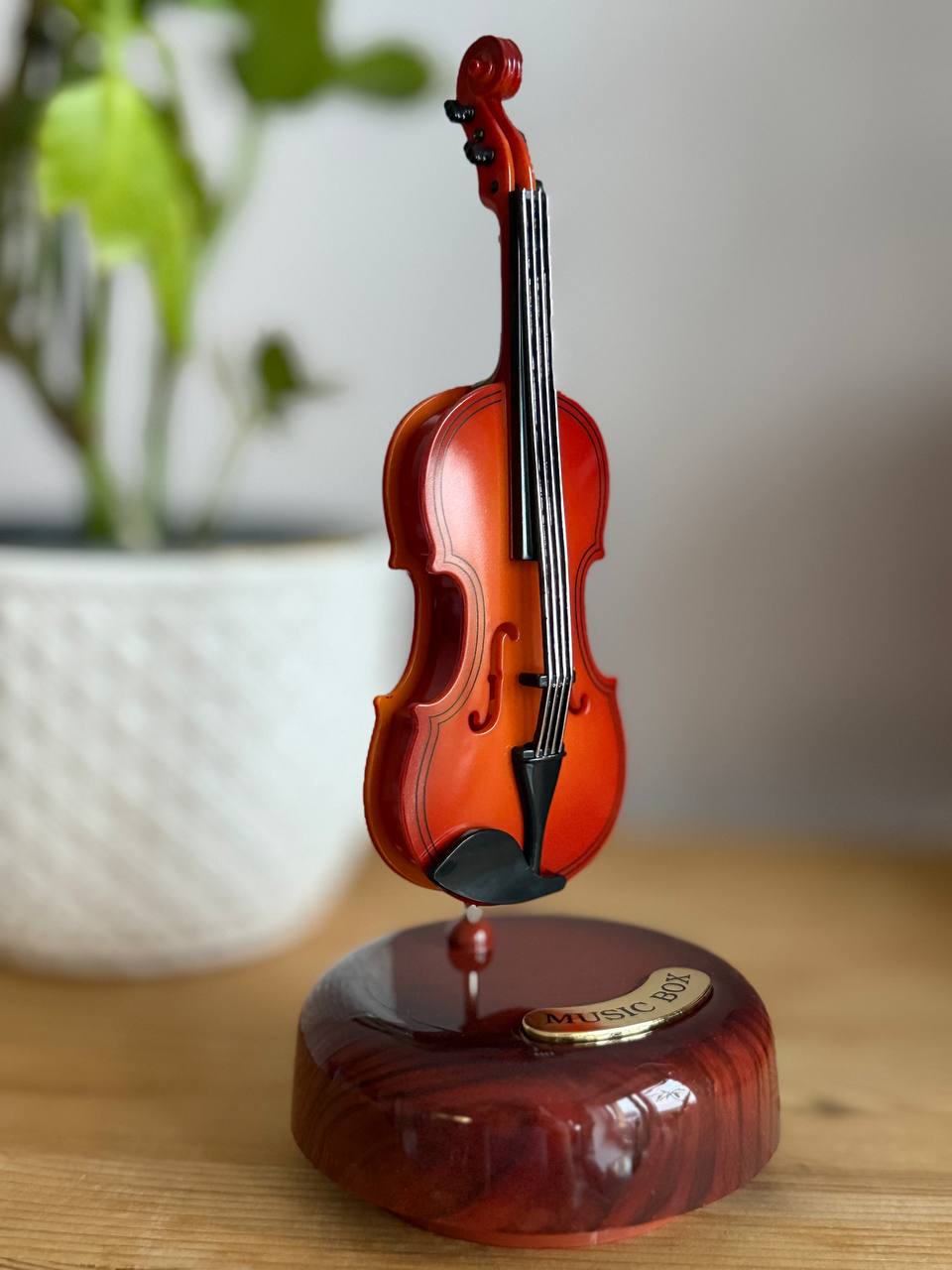 Изящная музыкальная статуэтка в виде скрипки с заводным механизмом. После заведения механизма из шкатулки доносится чарующее произведение Людвига ван Бетховена "К Элизе".