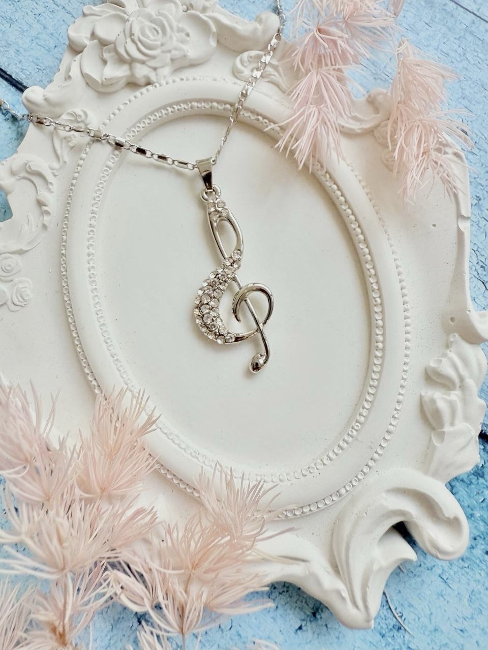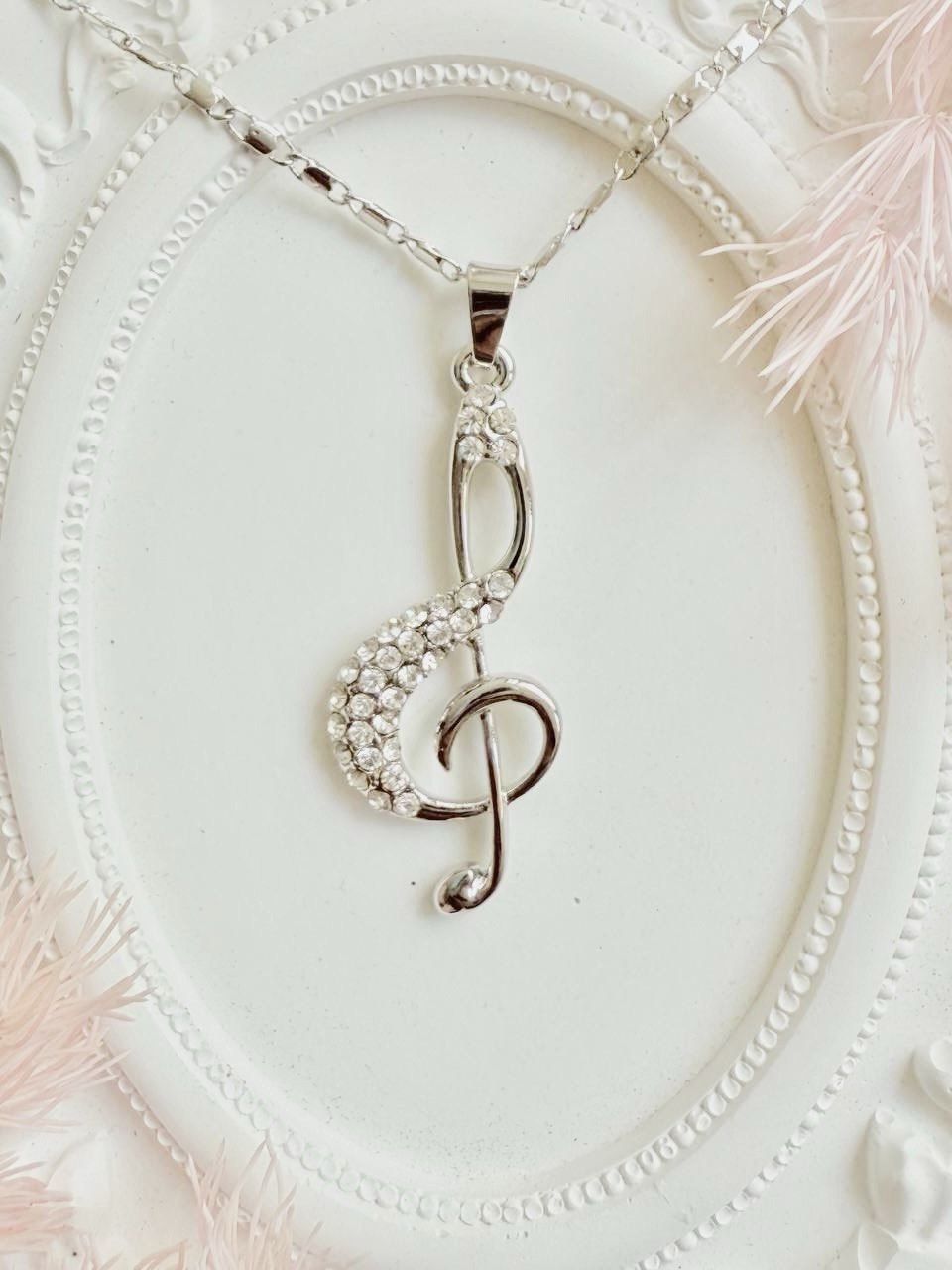 Подвеска в виде скрипичного ключа для истинных ценителей музыки. Украшение отлично буде смотреться со сцены и добавит образу творческого настроения!