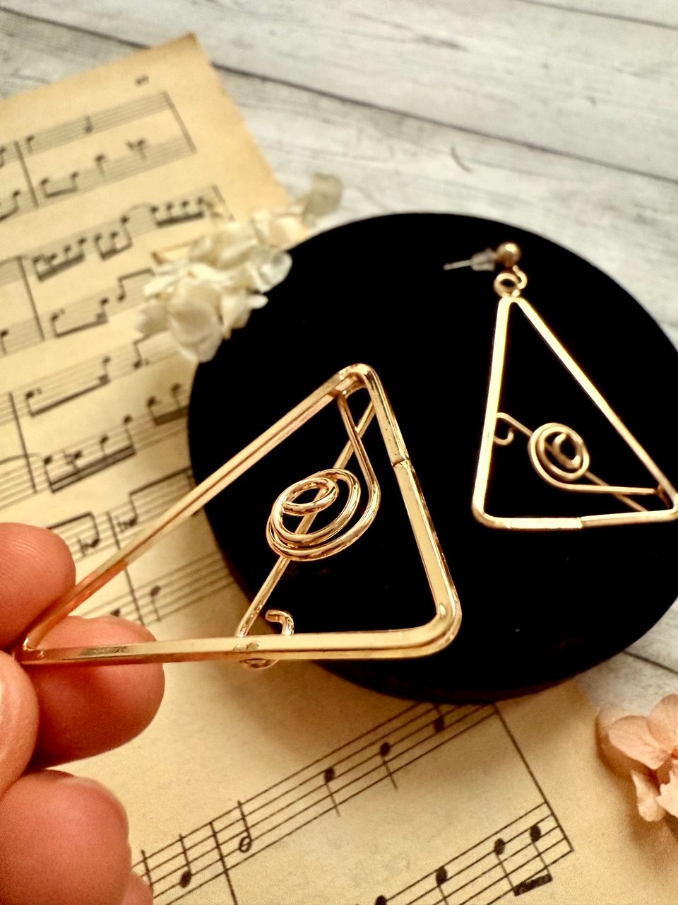 Элегантные серьги с геометричным дизайном: скрипичный ключ аккуратно заключён в треугольник. Эти серьги подчеркнут индивидуальность и любовь к искусству. Идеальный выбор для тех, музыкантов, кто ценит необычные аксессуары и хочет выделиться из толпы.