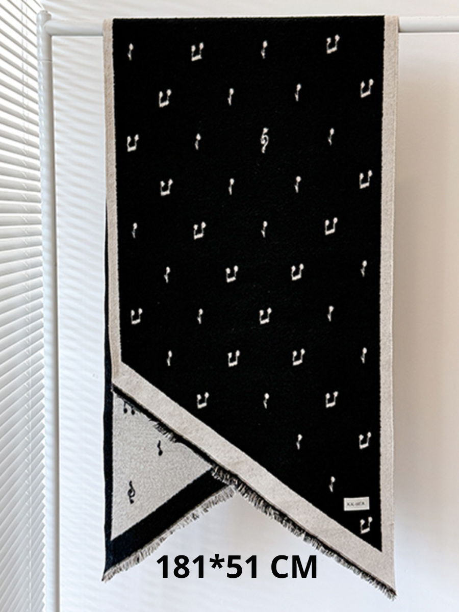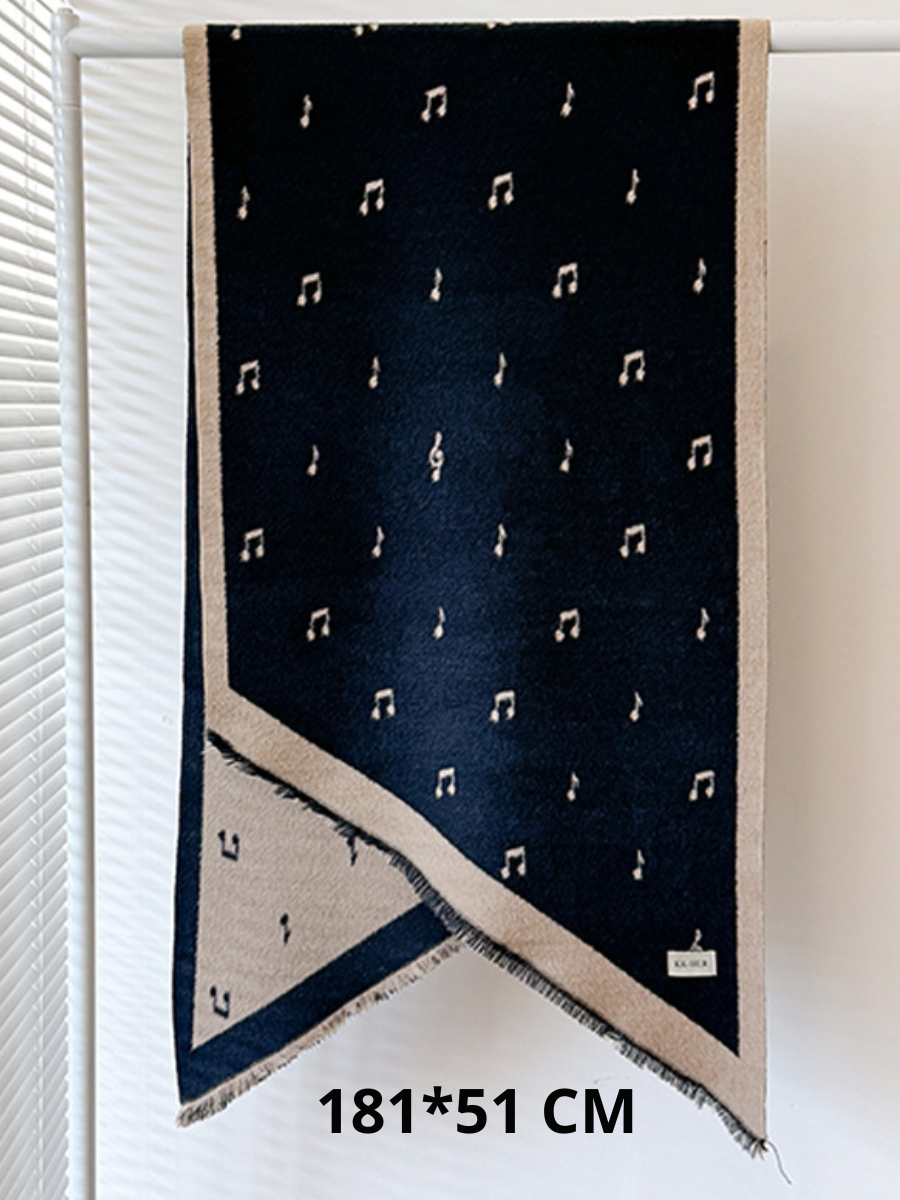 Очень мягкий шарф с рисунком нот. Тёплый и приятный к телу. Отличный аксессуар для музыканта. Шарф легко сочетать с пальто, плащом или свитером. Будет согревать и радовать музыканта!