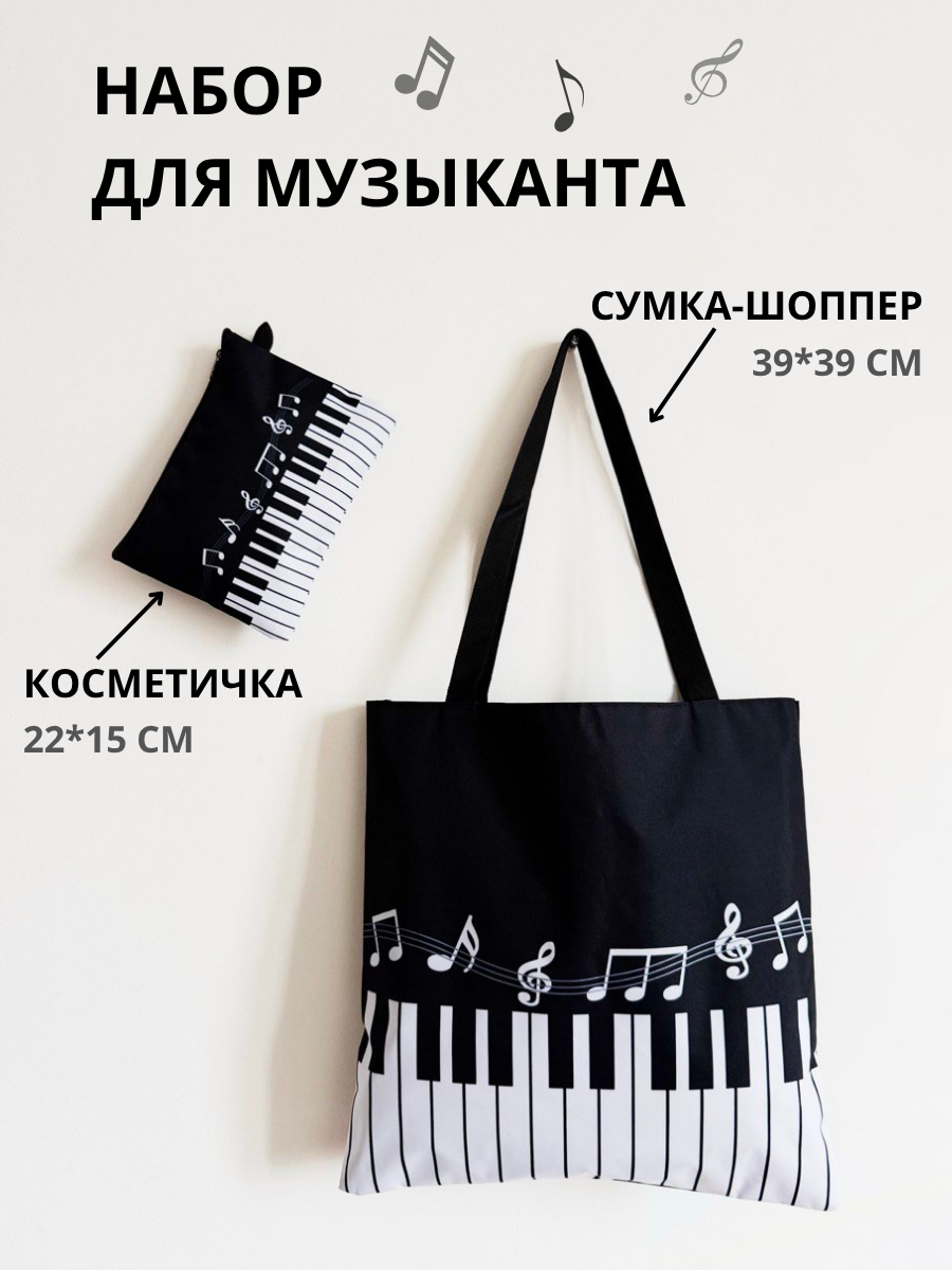 Стильный, вместительный и удобный шоппер в комплекте с пеналом-косметичкой. Идеальны для музыкантов!