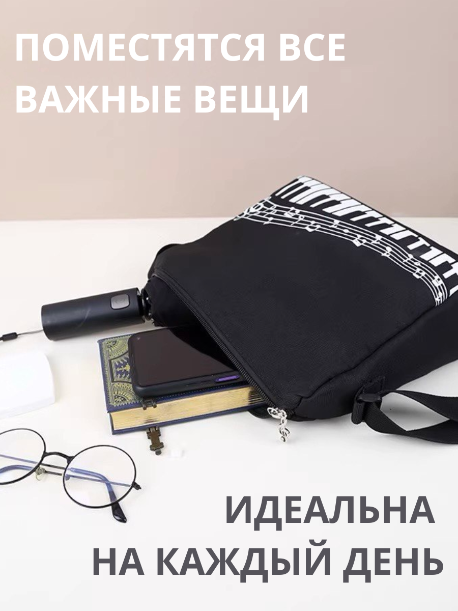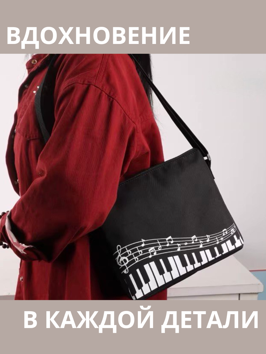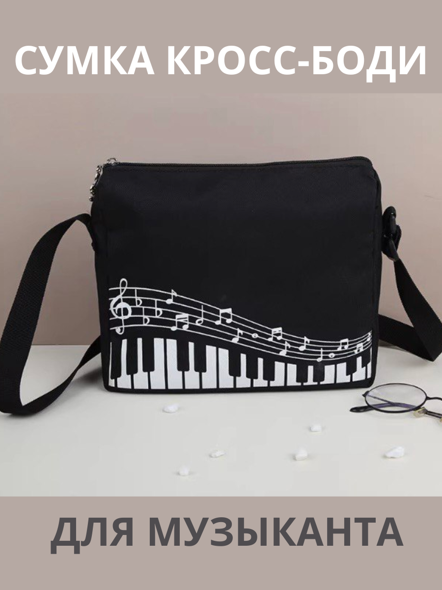 Удобная сумка через плечо кросс-боди для тех, кто увлечен музыкой! Сумка имеет регулируемый плечевой ремень, который позволяет носить ее на плече или через тело.