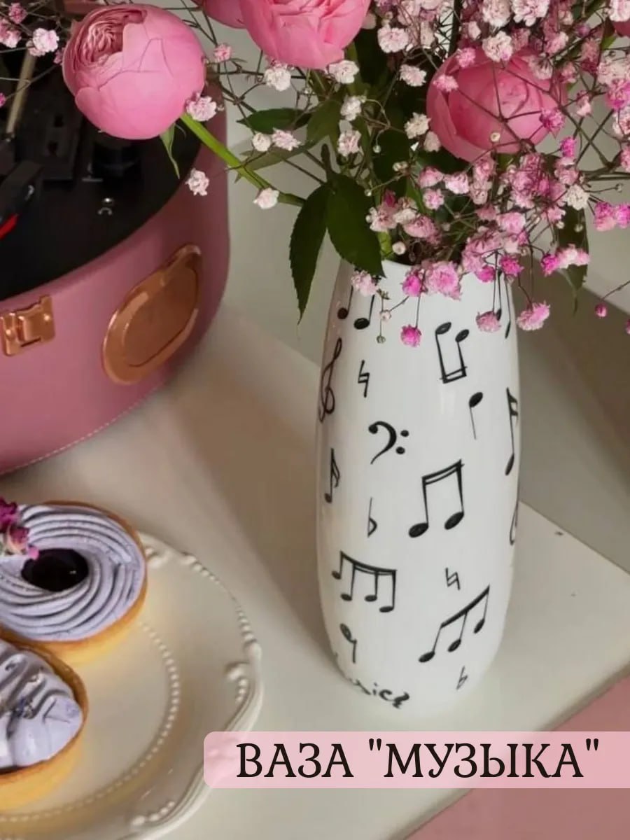 Ваза для цветов с нотами - это не просто подарок, а настоящее произведение искусства, созданное специально для музыкантов! Педагог точно обрадуется такому полезному и красивому подарку, и с удовольствием поставит туда цветы. Она отлично украсит рабочий стол учителя и будет напоминать о любимом деле. А еще такая ваза станет особенным акцентом в доме музыканта, символизируя любовь к музыке и вдохновляя на новые творческие свершения!